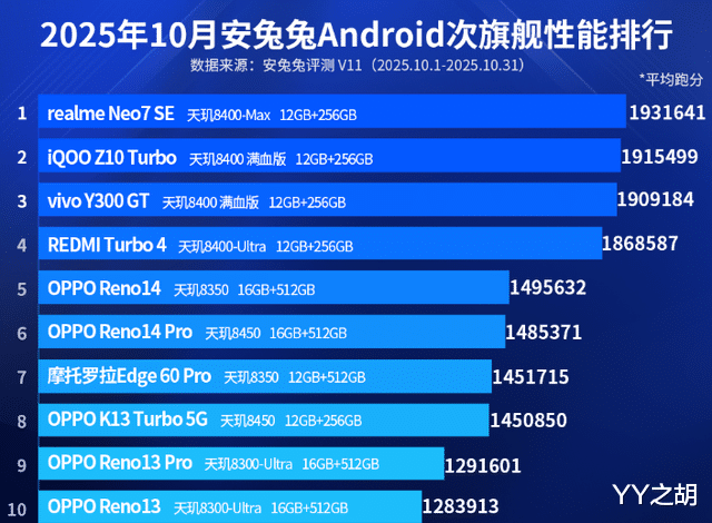 10月次旗舰手机性能排行榜: OPPO Reno13系列上榜!